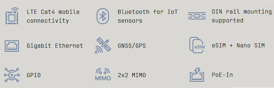 KNOT cu LTE4 integrat este un gateway LTE industrial mic, dar puternic, conceput pentru integratori, specialiști în automatizări și constructori de sisteme IoT. Se potrivește în spații înguste, se montează direct pe o șină DIN și oferă conectivitate LTE Cat4 fiabilă, cu suport Bluetooth și GNSS.
